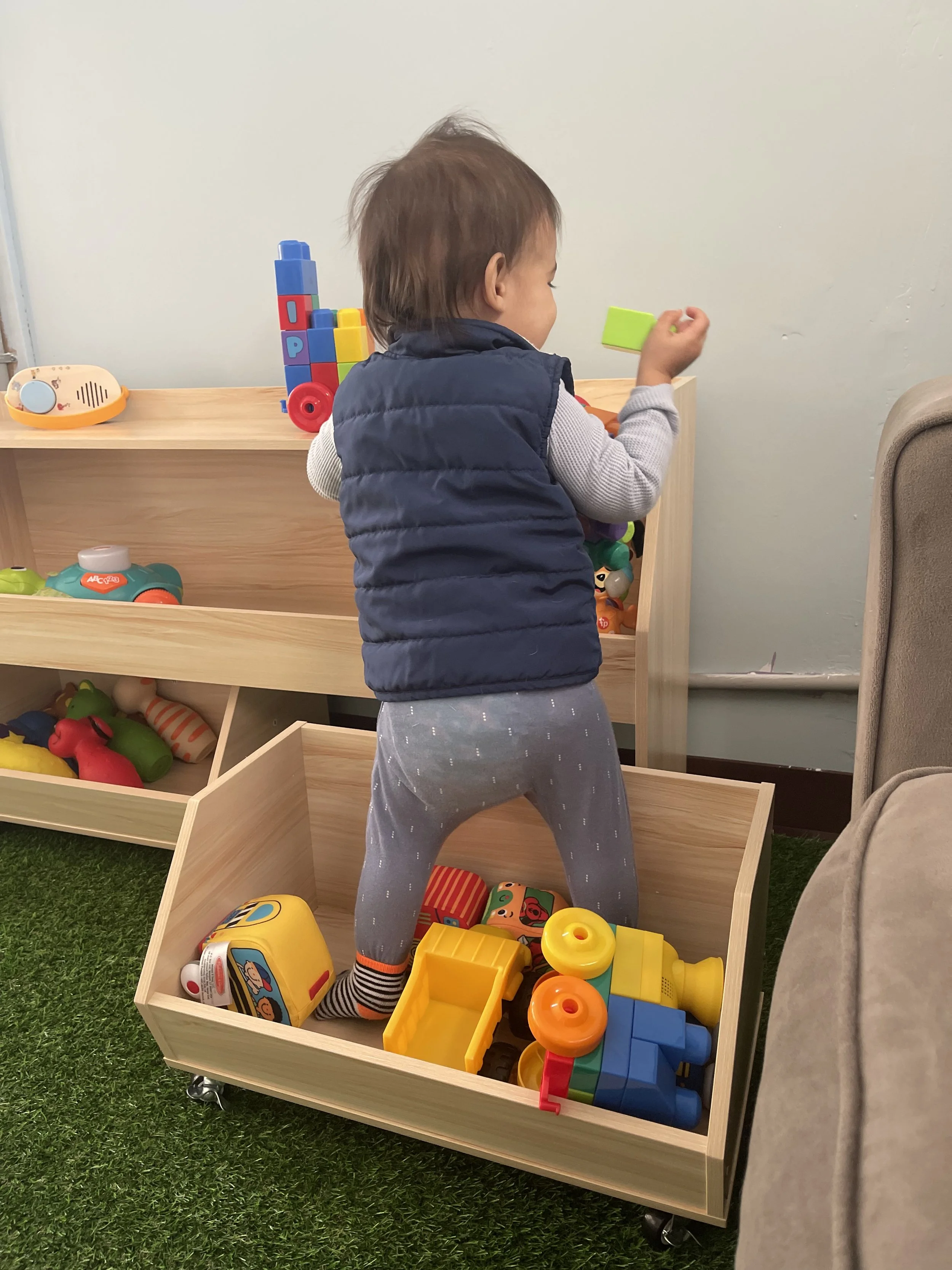The Toddler Program encourages early independence, socialization, and curiosity. Toddlers participate in guided play activities that build language, motor, and social skills, while following structured routines flexible to each child’s needs.